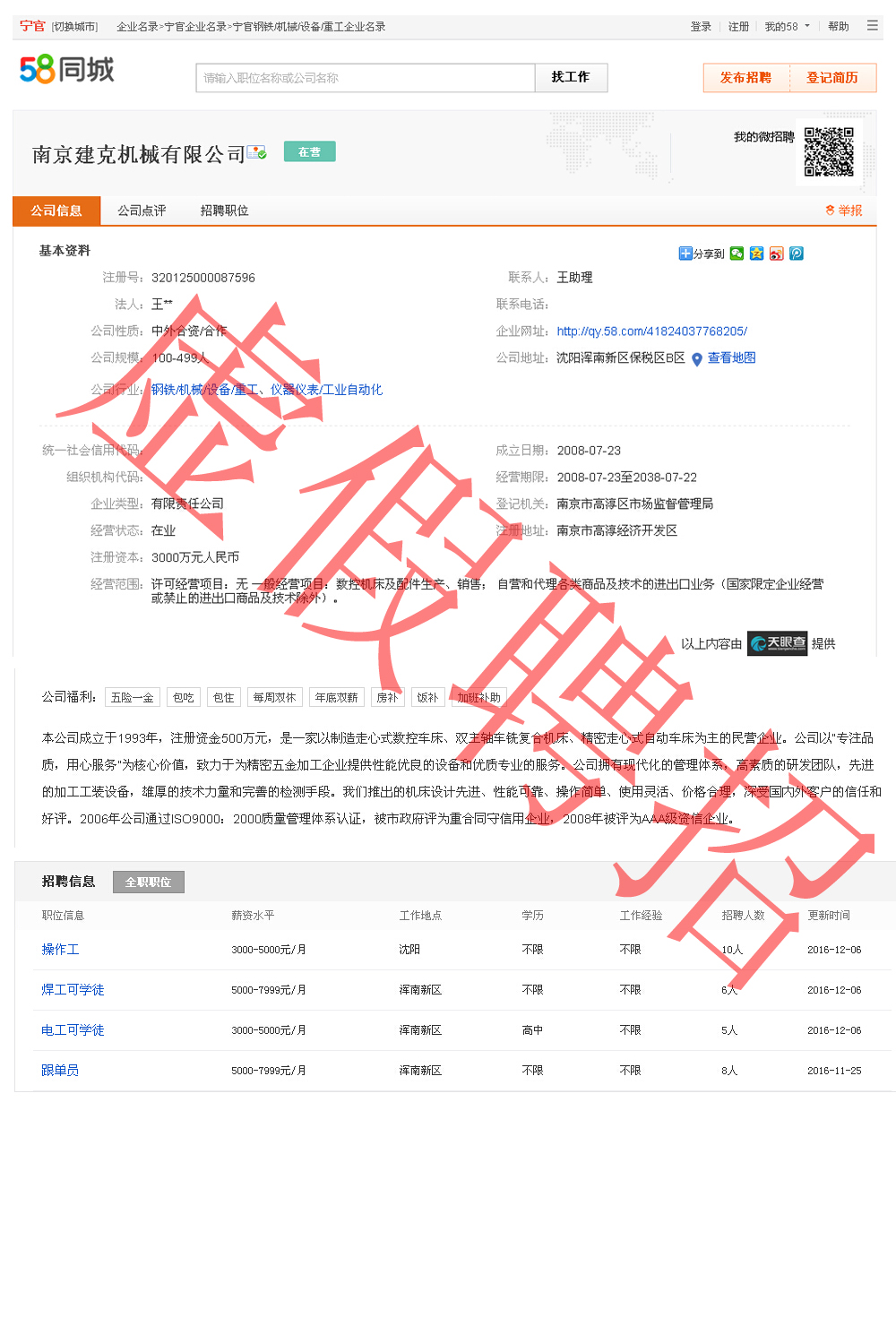 近期我司接到眾多沈陽地區的應聘電話,經調查了解,有非法人員冒充我司在58同城注冊帳號并且發布沈陽地區招聘廣告。現我司已與58同城溝通刪除該系列虛假信息中,請廣大應聘者切勿上當受騙,以免造成不必要的損失。如已經發生不良情況,請及時報警并與58客服溝通。由此帶來…